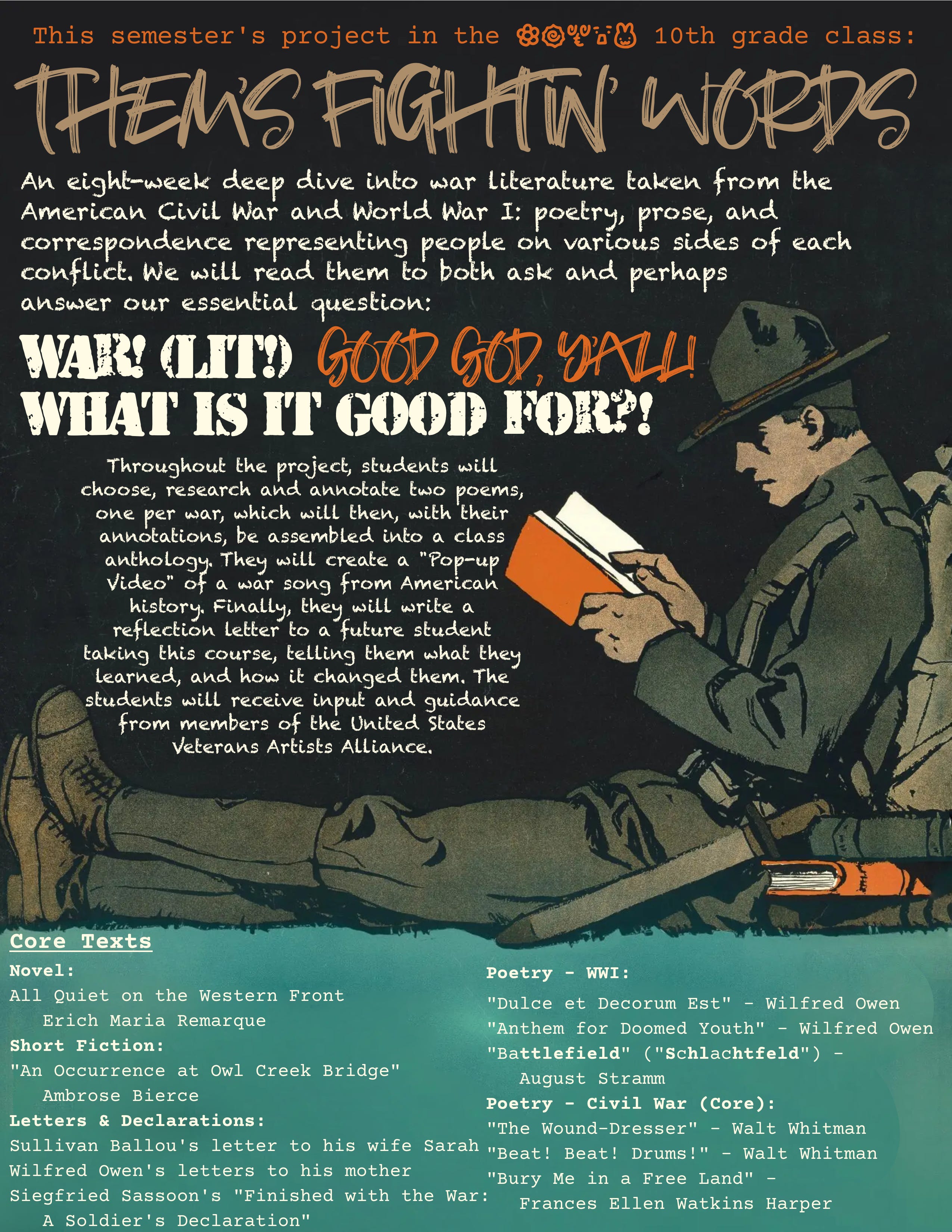 Of all the prototyping I have done this past school year, this one was actually the hardest. It wasn’t difficult to do, per se, but the ideas I had in my head were far more intricate and involved. I was unable to make the Annotation Poster look as much like an infographic or a map as I wanted to. I think this is because it would have been too difficult to do so, even for an adult. I had to keep myself to a less complex style: no lines connecting phrases to explanatory notes, no artistic arrangement of note “bubbles”, and far fewer notes than I’d imagined… I was able to create something, though, even though it was late. The poster I created pointed out to me the changes I’d want when it came time to for students to undertake the same project: I’d want to have them provide the research they did to fill the poster, perhaps on an annotation notecatcher; I’d want to have a more locked down rubric for what would need to be included in the poster; perhaps it would be nice to have a QR code that would bring up an audio version of the poem for people at Exhibition… Going through the prototyping process brings up new ideas that may not have surfaced otherwise.
